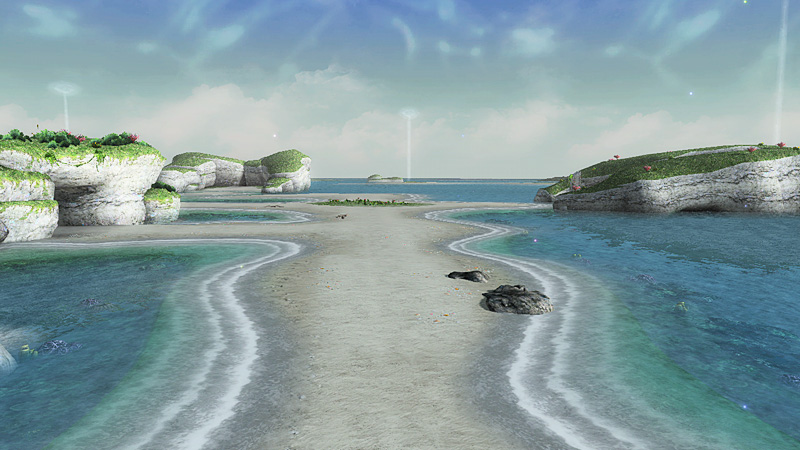地表のほとんどが海で構成されており、いまだ稼働中の不思議な施設や、それら施設の残骸らしきものが散見される……