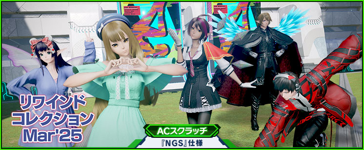 『NGS』仕様のACスクラッチとして、「リワインドコレクションMar'25」が登場します。冒険を手助けしてくれるアイテムや、ファッションを楽しむアイテムなど、さまざまなアイテムを入手することができます。ACスクラッチは『PSO2 ニュージェネシス』とキャラクター連動をしていると引くことができます。連動してチャレンジしてみましょう!