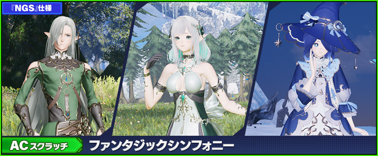 『NGS』仕様のACスクラッチとして、「ファンタジックシンフォニー」が登場します。冒険を手助けしてくれるアイテムや、ファッションを楽しむアイテムなど、さまざまなアイテムを入手することができます。ACスクラッチは『PSO2 ニュージェネシス』とキャラクター連動をしていると引くことができます。連動してチャレンジしてみましょう!