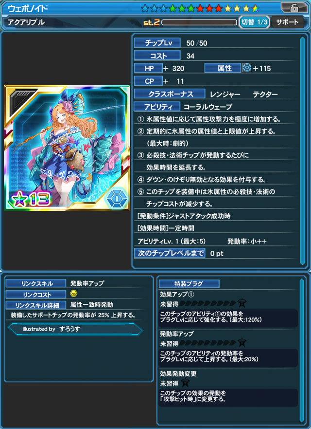 - ※掲載されているチップ画像は「最大Lv.」時のものとなっております。獲得時におけるステータスではございませんので、あらかじめご了承ください。
