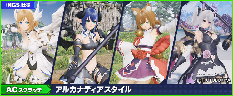 『NGS』仕様のACスクラッチとして、「アルカナディアスタイル」が登場します。冒険を手助けしてくれるアイテムや、ファッションを楽しむアイテムなど、さまざまなアイテムを入手することができます。ACスクラッチは『PSO2 ニュージェネシス』とキャラクター連動をしていると引くことができます。連動してチャレンジしてみましょう!