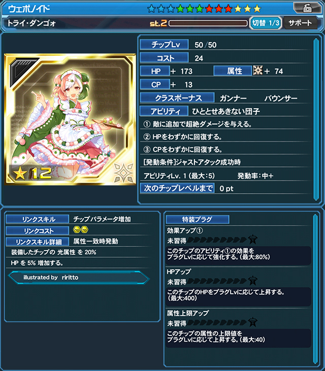 - ※掲載されているチップ画像は「最大Lv.」時のものとなっております。獲得時におけるステータスではございませんので、あらかじめご了承ください。