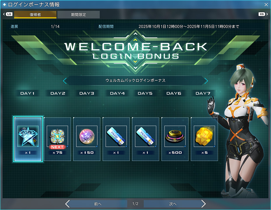 【復帰者限定】ウェルカムバックログインボーナス