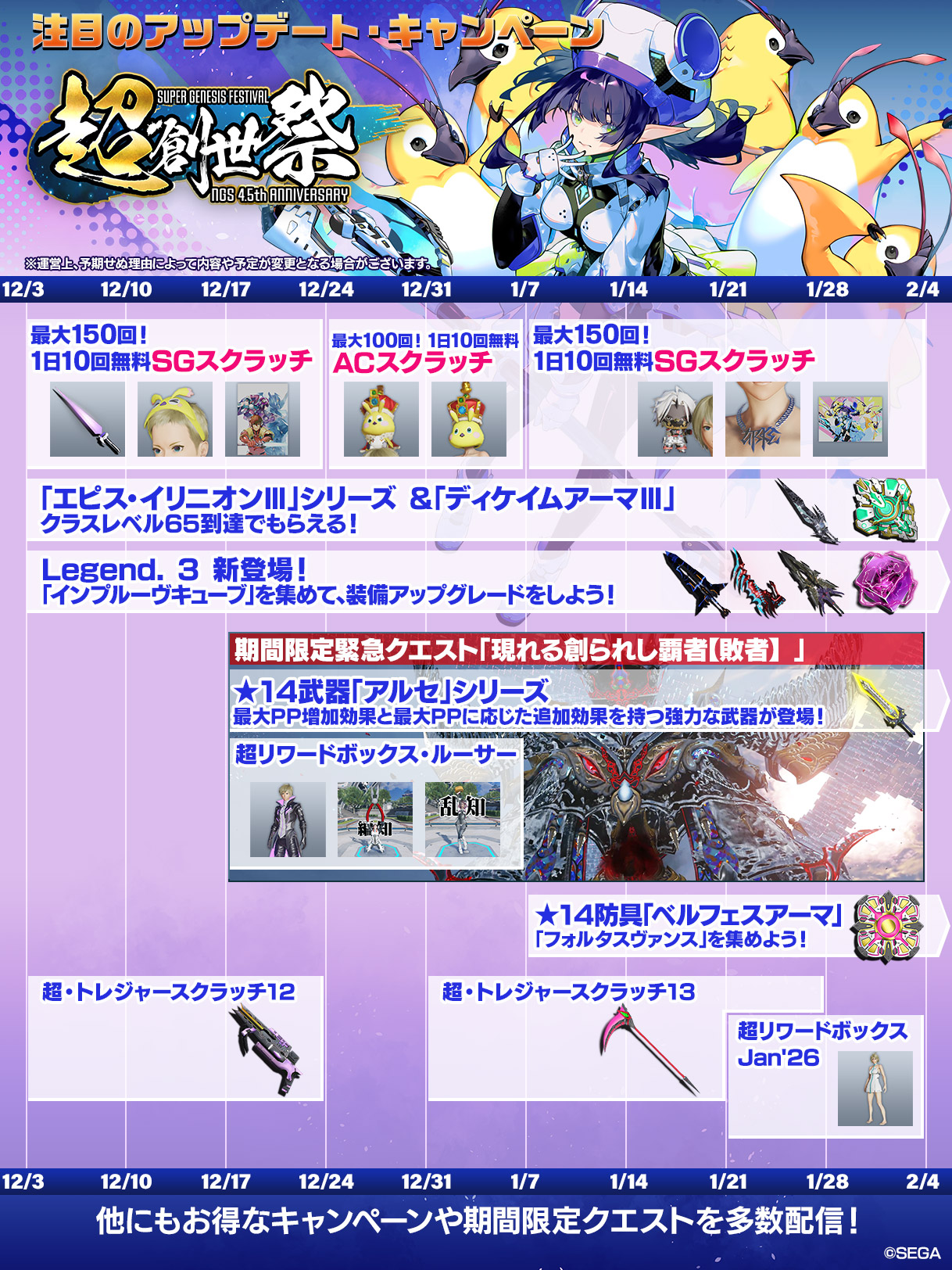 超・創世祭 ~『NGS』4.5th Anniversaryキャンペーン~の全体スケジュールはこちら