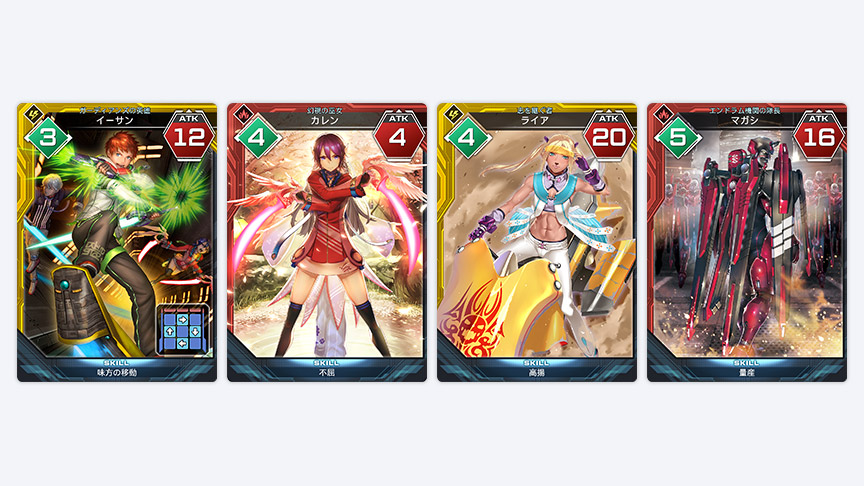 - 不屈:自分の戦力値が、自分のいる列の拠点が受けているダメージ×6だけ上がる。【パッシブスキル】
