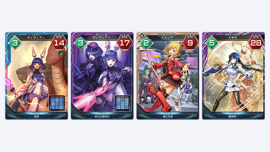 『PSU』や『PSPo2』などグラール太陽系シリーズのキャラクターたちが参戦!新デッキ構築の軸となるようなカードや、既存デッキに組み込むことで戦略が広がるカードなど12種が新登場!