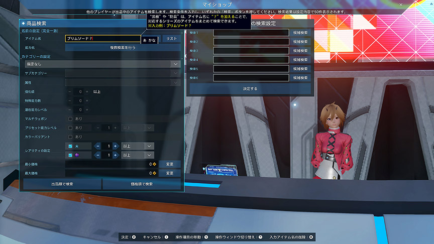 - マイショップのシリーズ検索機能に、武器・防具のシリーズ検索を追加!商品検索で後ろに「?」をつけることで、該当シリーズのアイテムを同時に検索可能!プリセット能力の素材を探す際便利になるぞ!