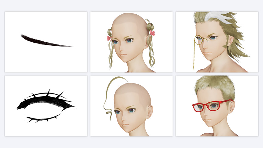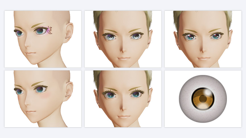 過去に配信した、瞳、メイクパターン、まゆ、まつげに加えて「ムーンライトコンタクト」や「ソリッドアイラッシュ」といった、顔のカスタマイズに便利なアクセサリーを集めて再配信!